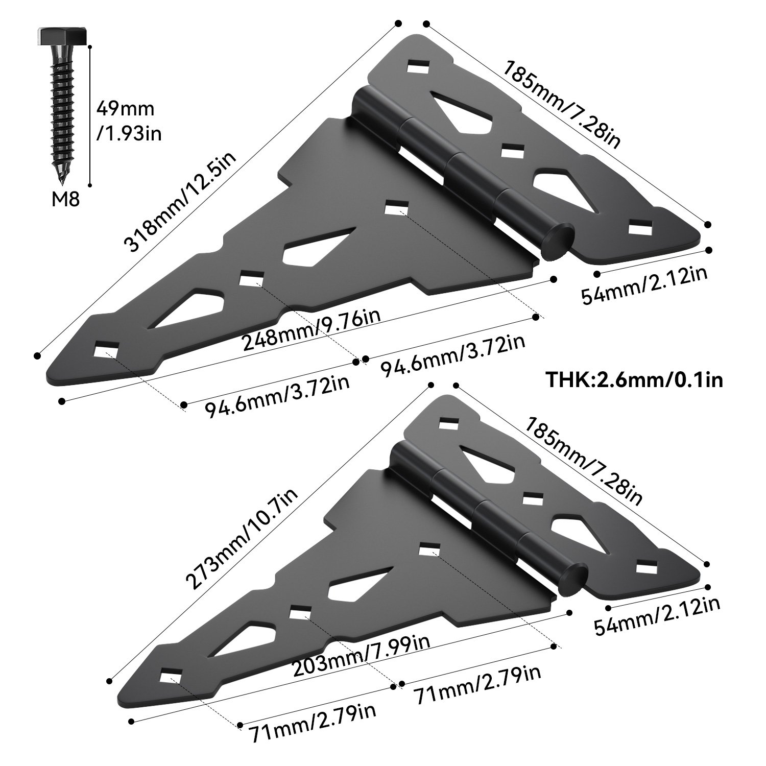 Obtenga todo lo que necesita en un juego completo: 2 robustas bisagras en T plegables y 12 tornillos de alta resistencia para una instalación rápida y segura. ¡No faltan piezas!