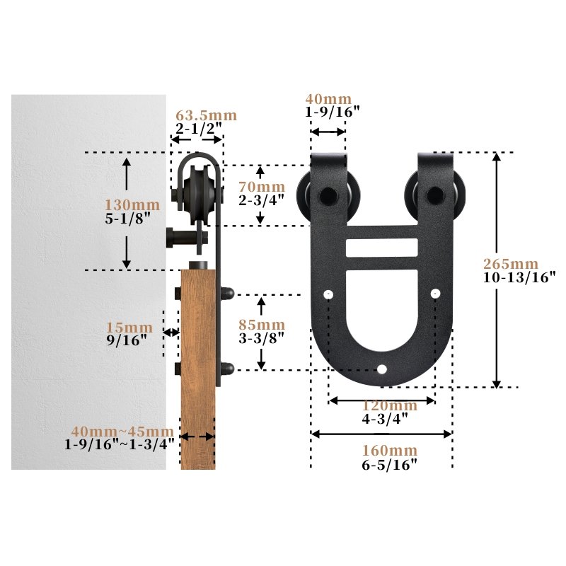 The design inspiration for the horseshoe-shaped barn door pulley comes from the classic horseshoe shape, symbolizing good luck and stability. Its unique form not only provides a striking visual impact but also offers superior structural support. Made from high-quality metal materials, the pulley ensures durability and reliability. The horseshoe design, combined with smooth lines, strikes a perfect balance between aesthetics and functionality, adding a distinctive style to modern home environments.