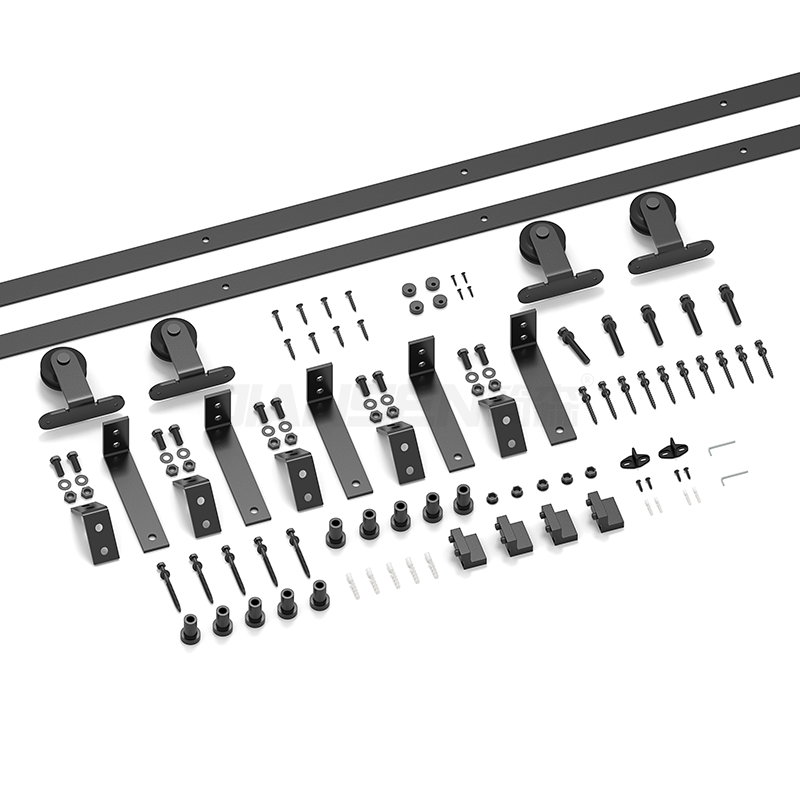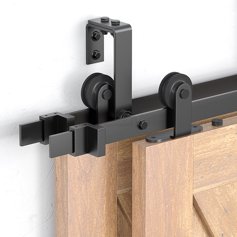 Black Powder Coating Top Amount Type Sliding Bypass Barn Door Hardware Kits For Two Door Bypass Style-HM2202