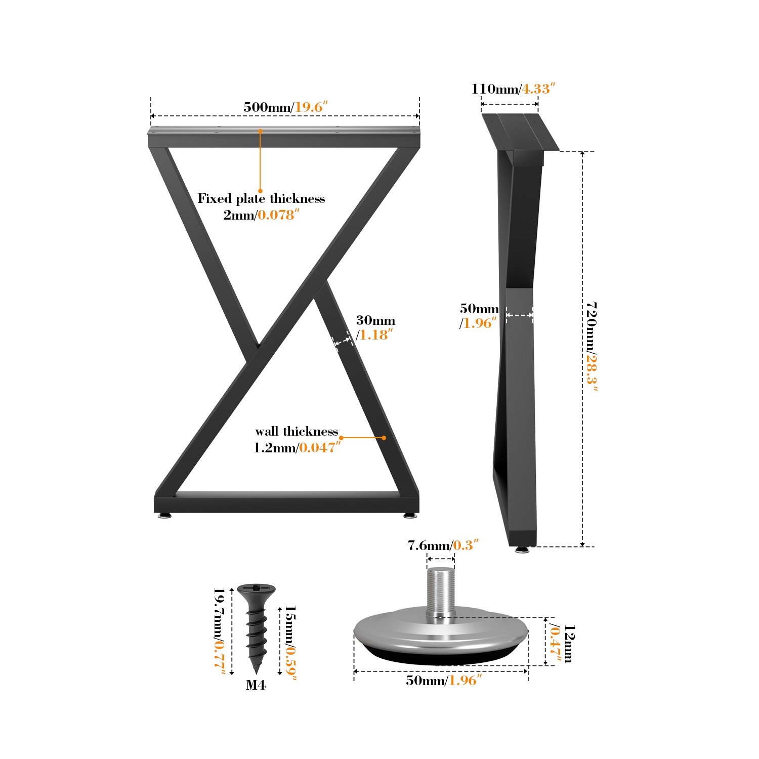 A:When purchasing, it is recommended to carefully measure the tabletop size first, and select the appropriate leg height specification. It is also important to ensure the tabletop material and thickness can reliably secure the table legs.