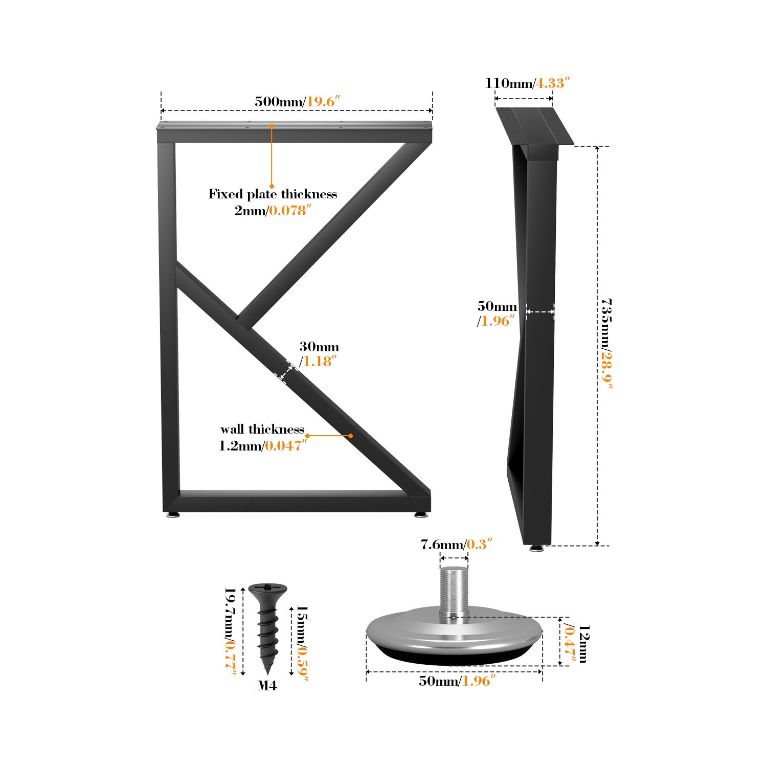A:When purchasing, it is recommended to carefully measure the tabletop size first, and select the appropriate leg height specification. It is also important to ensure the tabletop material and thickness can reliably secure the table legs.