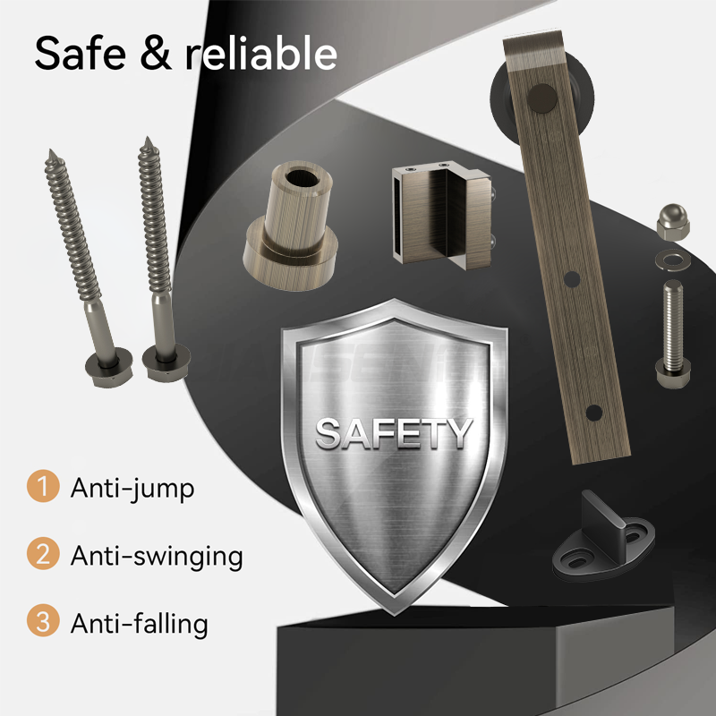 【Heavy-Duty Sturdy】The sliding door kit is crafted from 6mm thick, high-density premium carbon steel. Its surface features a high-temperature black powder coating. Equipped with corrosion resistance, color retention, rust prevention, waterproofing, and fire resistance, it ensures extended product life.