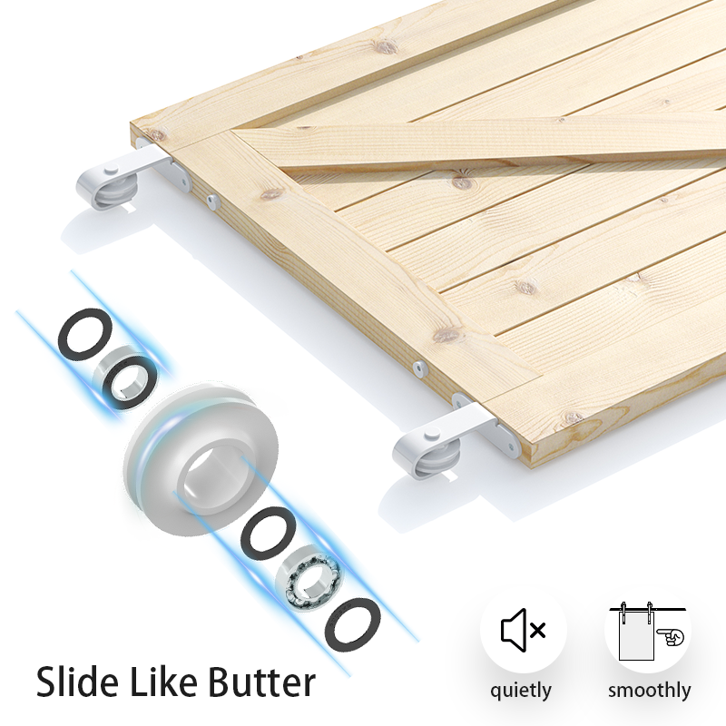 【Heavy-Duty Sturdy】The sliding door kit is crafted from 6mm thick, high-density premium carbon steel. Its surface features a high-temperature black powder coating. Equipped with corrosion resistance, color retention, rust prevention, waterproofing, and fire resistance, it ensures extended product life.