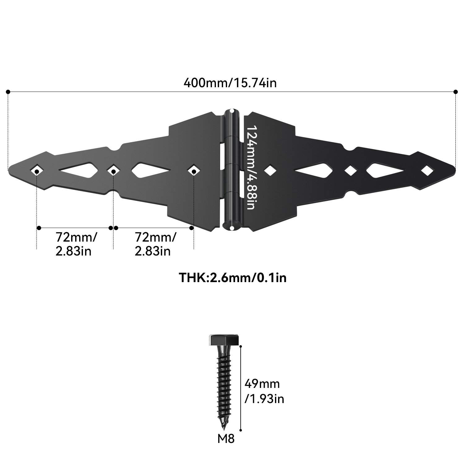 The Fence Gate Hinge hex screw with black zinc plating is used as a fixed part to form a unified tone with the black spray surface of the hinge, which avoids the visual abruptness caused by the color difference of the traditional screw and makes the overall installation effect more harmonious and beautiful. At the same time, it also improves the corrosion resistance of the screws and is not easy to rust even if it is used for a long time.