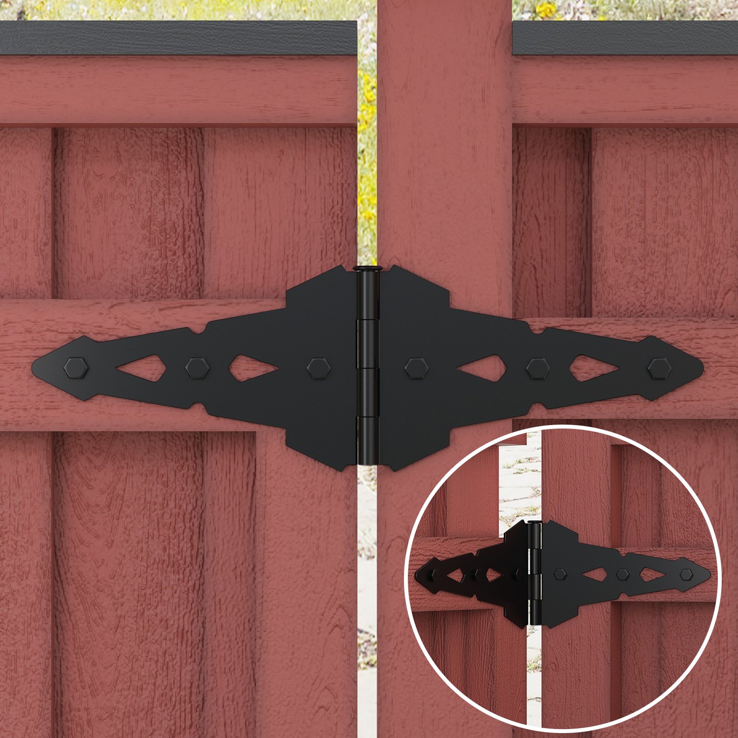【Widely Used】The Fence Gate Hinge is suitable for inward and outward wood, vinyl fence, it can also be installed in aluminum alloy doors or metal gates in gardens,farms, pastures, backyards,orchards, car sheds, sheds, baby fences, pet fences, and animal fences.