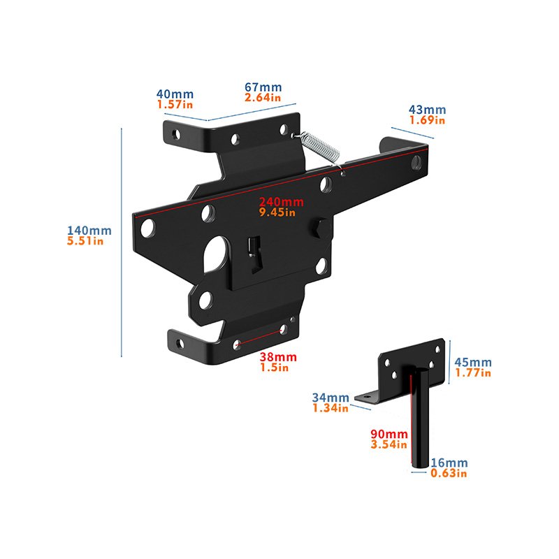 Galvanized treatment effectively prevents the Self-Locking Gate Latch from being eroded by environmental humidity, rain and chemical substances, and greatly extends the service life. The black powder coating is not only beautiful, but also further increases the ability to prevent rust and corrosion, ensuring that the Self-Locking Gate Latch remains bright as new in bad weather conditions. At the same time, black as a classic and low-key color, can be well integrated into a variety of environments.