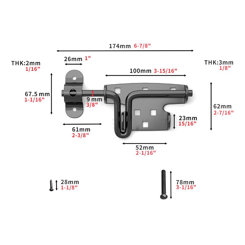 The spring mechanism can automatically push the lock lever into the Slide Bolt Gate Latch hole when the door is closed, achieving fast and silent self-locking function without manual operation.
