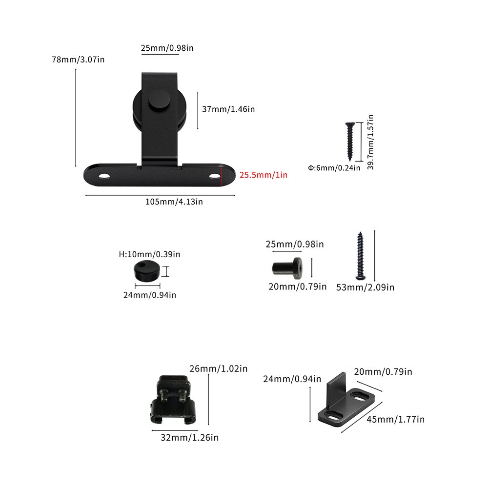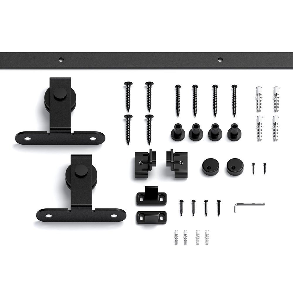 【Sturdy & Durable】High quality carbon steel mini sliding barn door system, the track surface is treated by black spraying, effectively waterproof and antirust. Well-designed parts and simple installation.