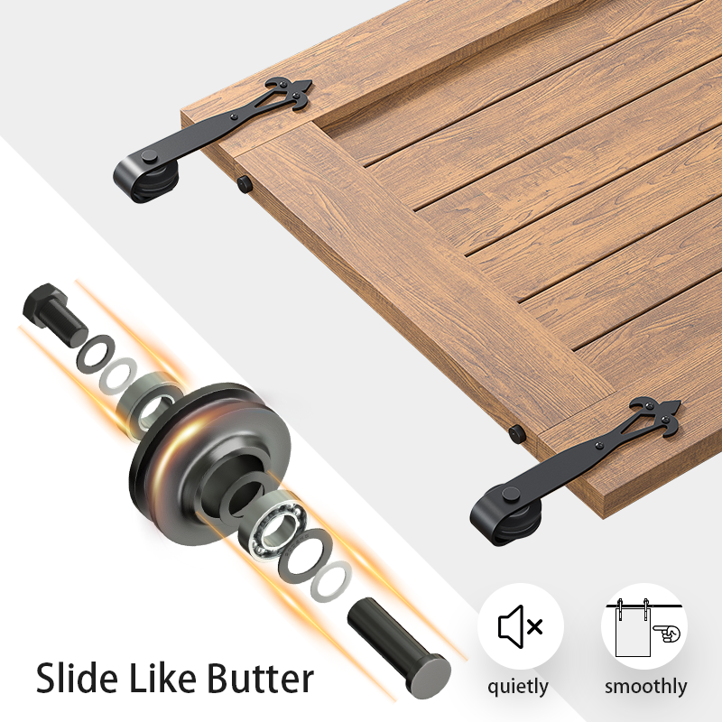 【Heavy-Duty Sturdy】The sliding door hardware kit is crafted from 6mm thick, high-density premium carbon steel. Its surface features a high-temperature black powder coating. Equipped with corrosion resistance, color retention, rust prevention, waterproofing, and fire resistance, it ensures extended product life.