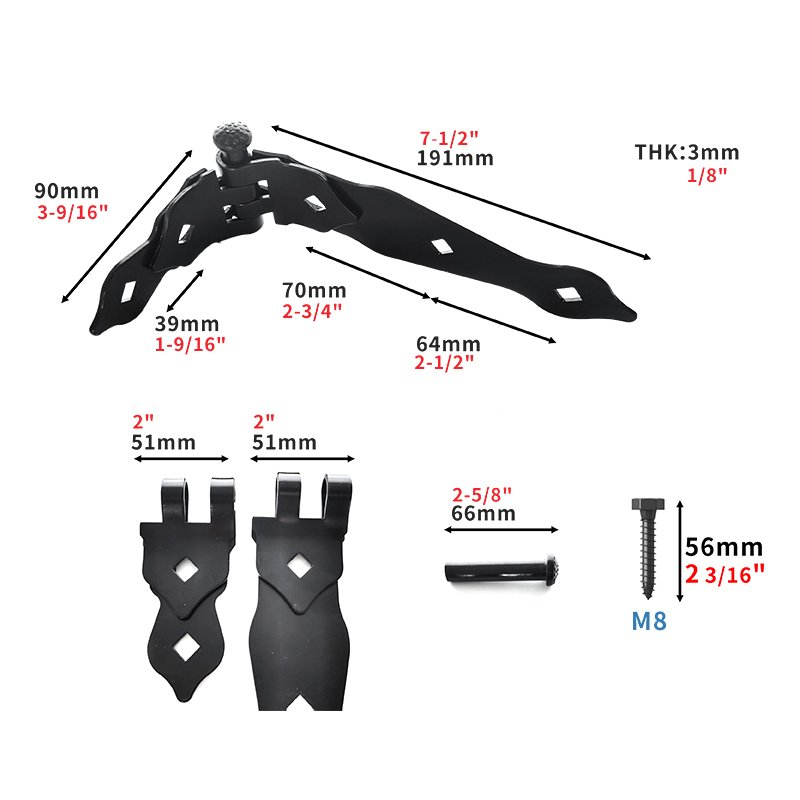 【Widely Used】The Strap Hinge is suitable for inward and outward wood, vinyl fence, it can also be installed in aluminum alloy doors or metal gates in gardens,farms, pastures, backyards,orchards, car sheds, sheds, baby fences, pet fences, and animal fences.