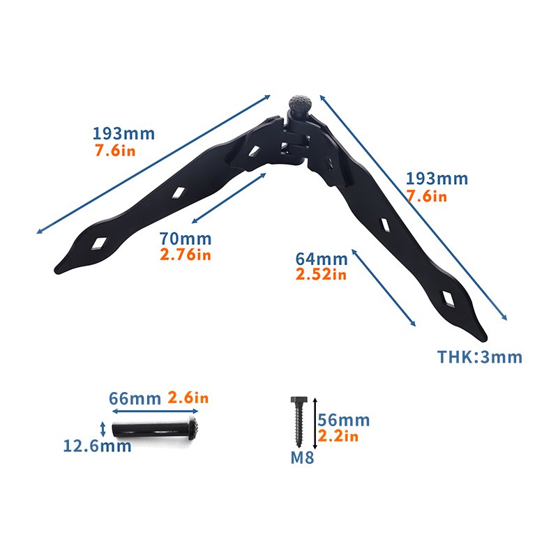 【High Quality】Strap Hinges For Wooden Door is made of 304 stainless steel and coated with black powder, which is durable and sturdy, anti-rust, and with excellent corrosion resistance.