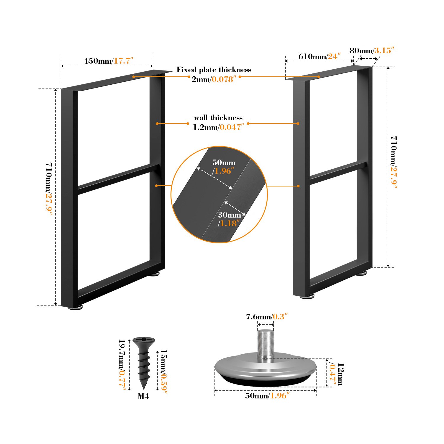 A:When purchasing, it is recommended to carefully measure the tabletop size first, and select the appropriate leg height specification. It is also important to ensure the tabletop material and thickness can reliably secure the table legs.