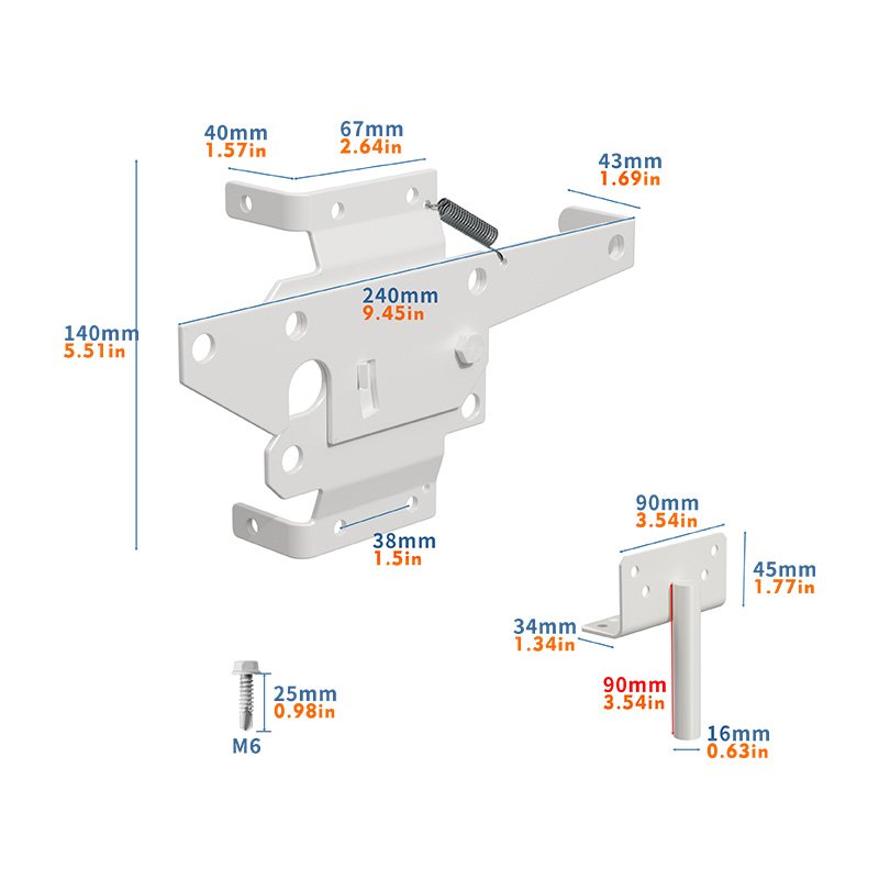The Automatic Gate Lock use of galvanized white powder coating greatly extends the service life of the product. Can further increase the ability to prevent rust and corrosion