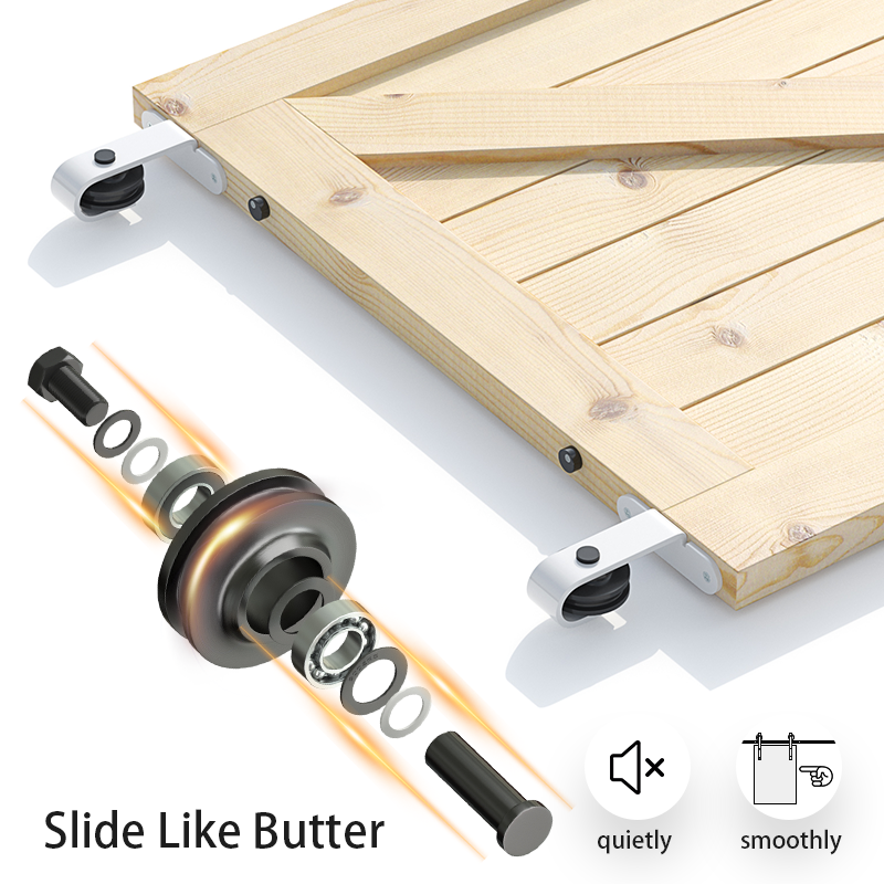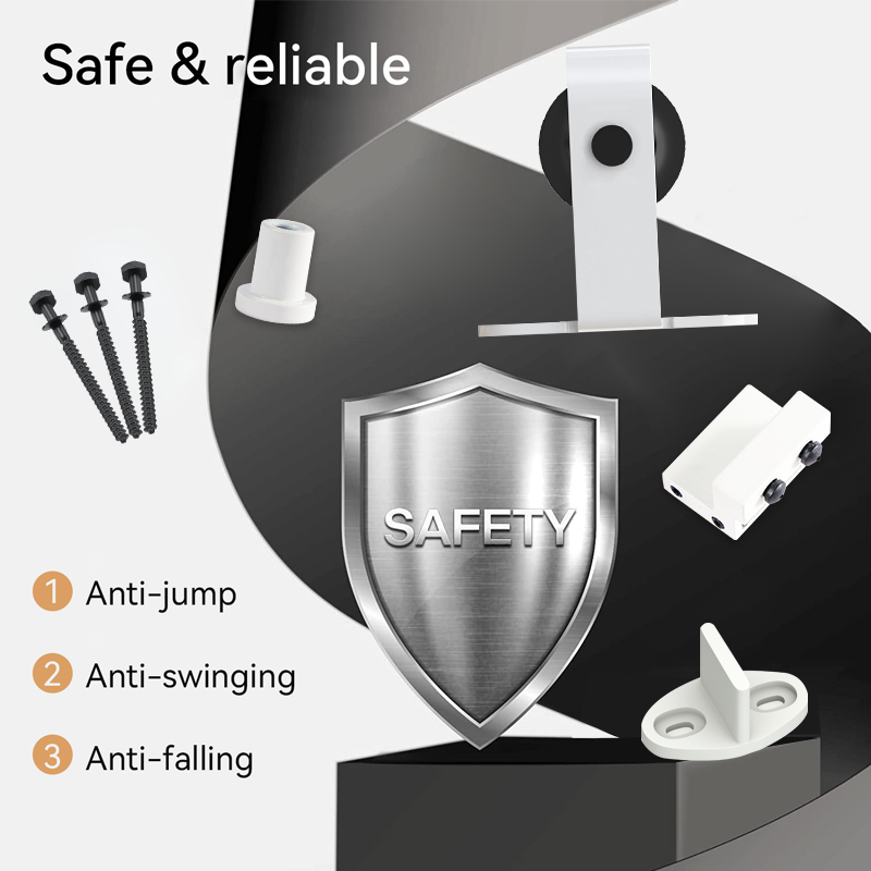 【Heavy-Duty Sturdy】The sliding door kit is crafted from 6mm thick, high-density premium carbon steel. Its surface features a high-temperature black powder coating. Equipped with corrosion resistance, color retention, rust prevention, waterproofing, and fire resistance, it ensures extended product life.