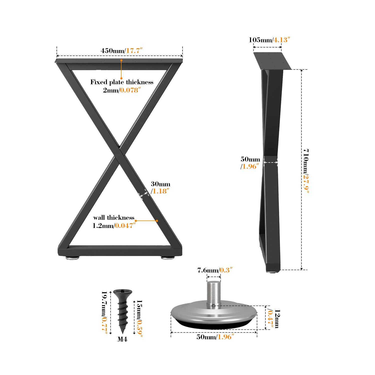 A:When purchasing, it is recommended to carefully measure the tabletop size first, and select the appropriate leg height specification. It is also important to ensure the tabletop material and thickness can reliably secure the table legs.