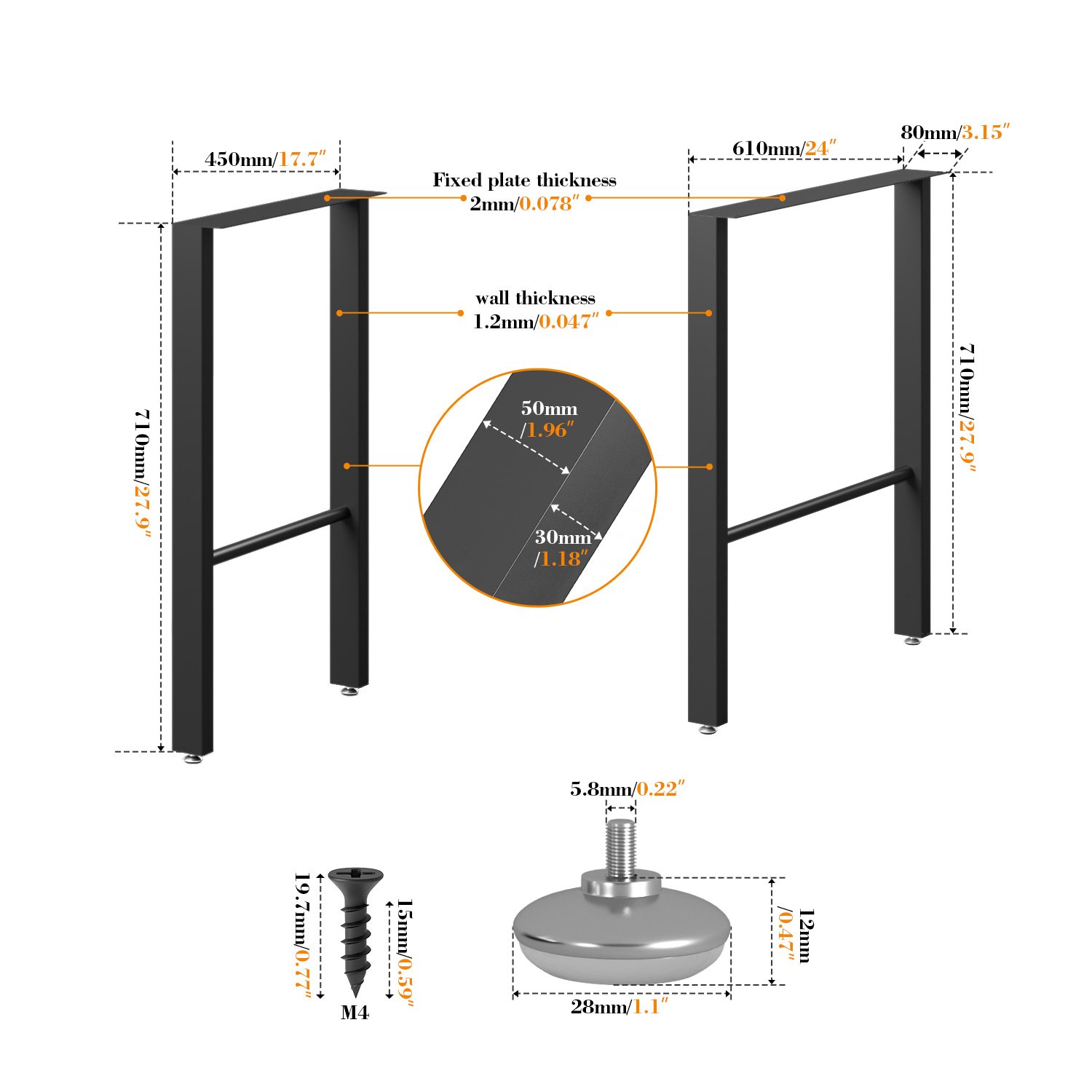 The black DIY metal table legs are a high-quality furniture accessory, featuring excellent safety, durability, and aesthetics. It provides DIY enthusiasts with a convenient and flexible custom furniture solution, widely applicable to home, office, commercial, and various other space renovations.