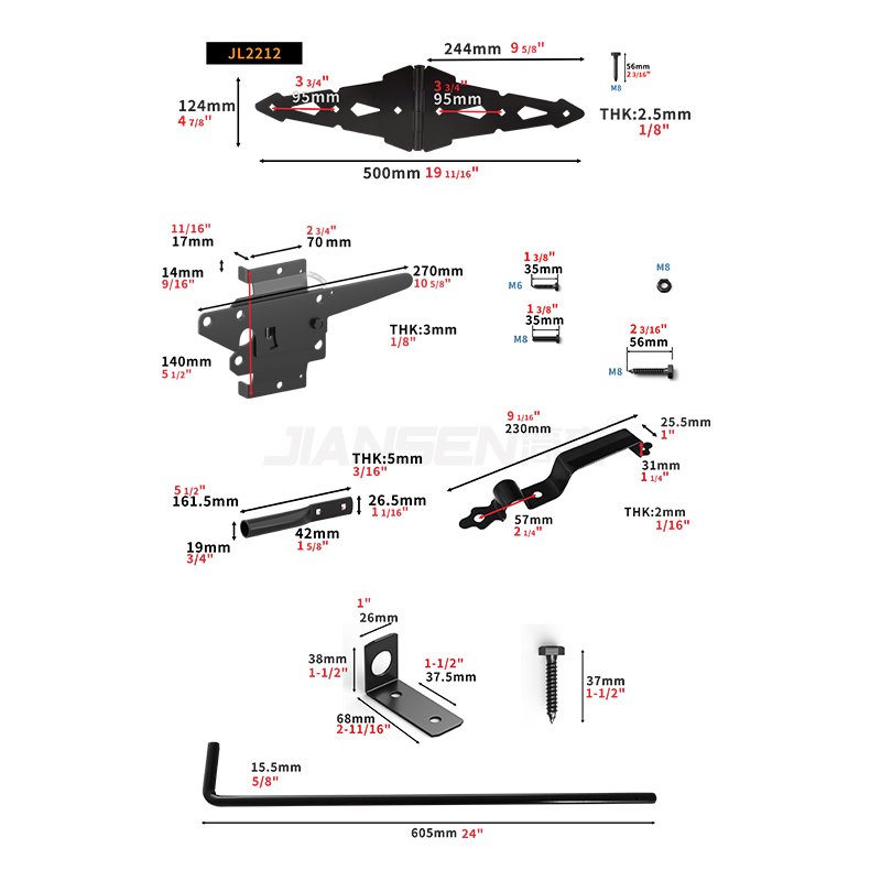 When 8-foot timber gates start sagging or slamming in storms, generic hardware won’t fix it. That’s why the JL2230 Kit exists: Not just components, but a physics-tuned solution for gates spanning 10–24 feet (3–7.3 meters). Every 5kg of steel here serves one purpose – making oversized gates behave like smaller ones.