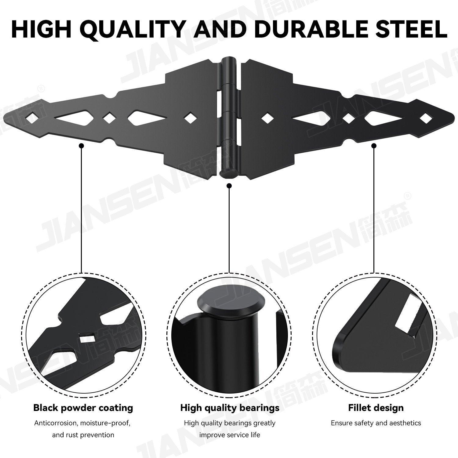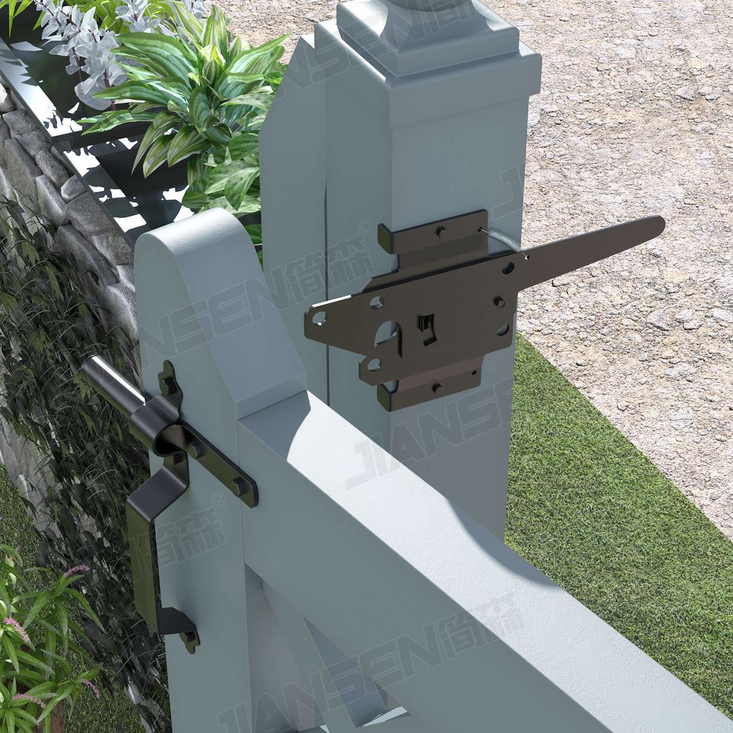 In short, Jiansen-JL2209 wooden fence door hinges and latch handles are a practical, beautiful and secure fence door control hardware package that can bring a high quality experience to your wooden fence. Easy to install, easy to operate, is the ideal choice for wooden fences.This wooden fence hinge and lock combination is an essential safe and easy to use component of fence gates. They are widely used in various types of fence doors, easy to install and easy to use.