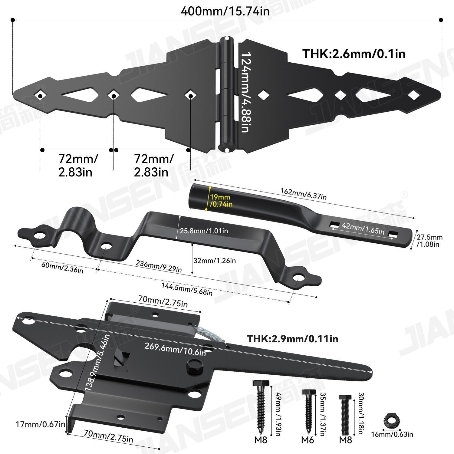 Jiansen-JL2209 Wooden fence door hinges and latch handles set for a variety of wooden fences including but not limited to: