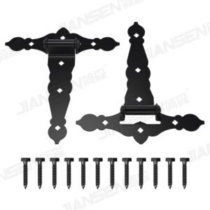 Wooden fence T hinges are not only functional but also add an aesthetic appeal to your wooden fence gate. Their classic design, available in both traditional and modern styles, complements the natural beauty of wood while adding a rustic or sophisticated touch, depending on the finish and material you choose. Whether you are building a rustic country fence or a more contemporary wooden gate, T hinges come in various styles and finishes to match your preferences.